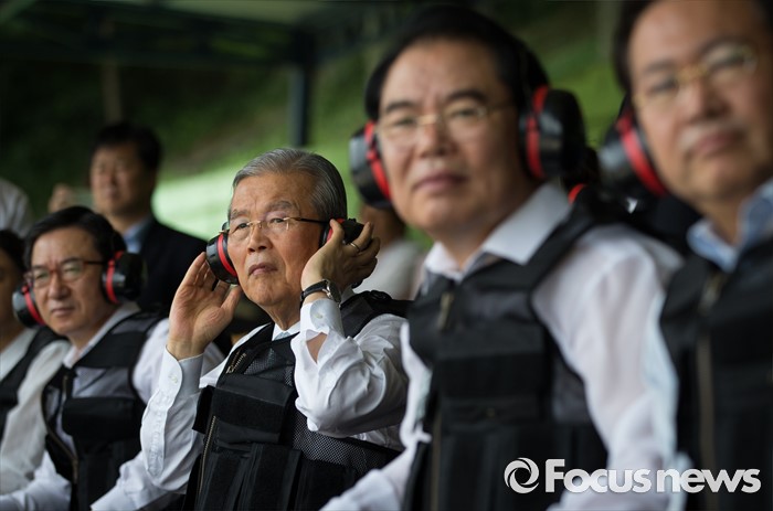 (서울=포커스뉴스) 김종인(왼쪽 두 번째) 더불어민주당 비상대책위원회 대표와 안전행정위원들이 21일 오전 서울 서초구 경찰특공대를 방문해 대테러 훈련 시범을 참관하고 있다.