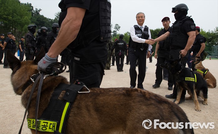 | △ 경찰 특공대원들 격려하는 김종인 |