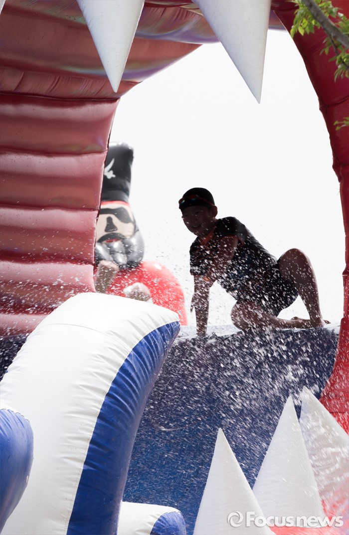 (서울=포커스뉴스) 21일 오후 서울 광진구 뚝섬 한강공원 수영장을 찾은 한 어린이가 물놀이를 즐기고 있다.