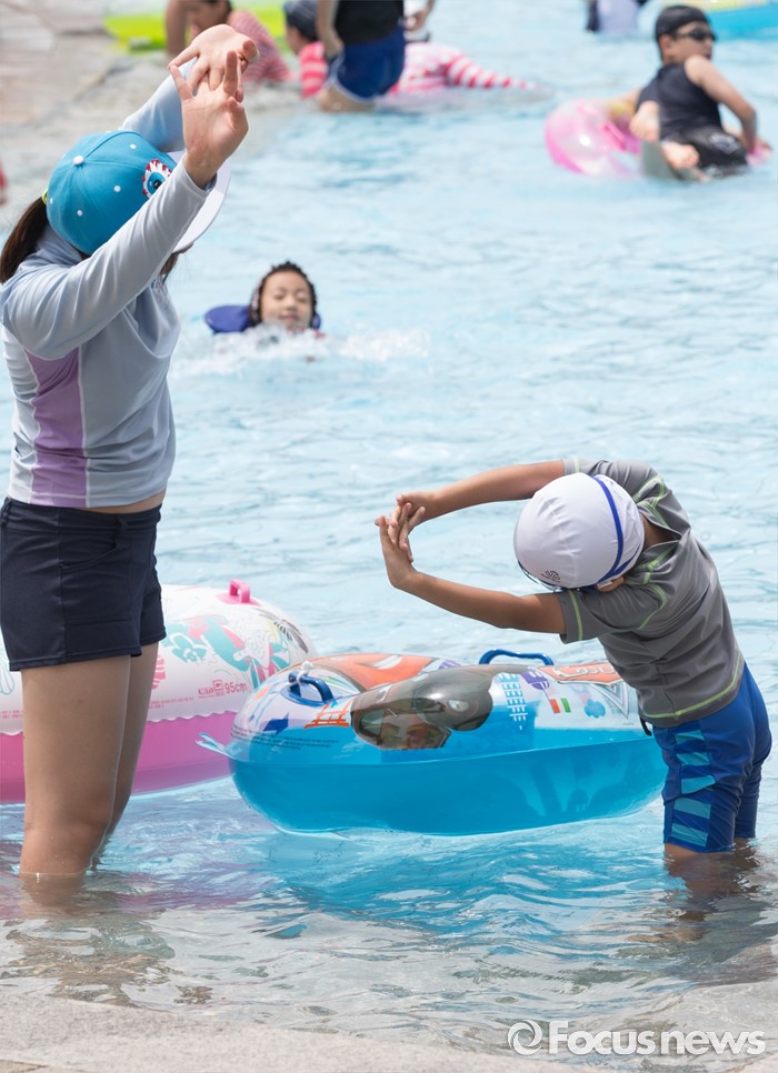 (서울=포커스뉴스) 21일 오후 서울 광진구 뚝섬 한강공원 수영장을 찾은 시민들이 물놀이를 즐기고 있다.