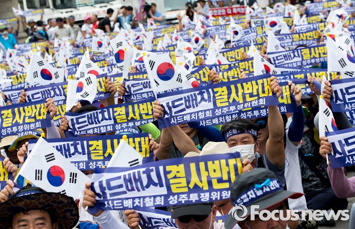 (서울=포커스뉴스) 21일 오후 서울역 광장에서 사드 배치 반대를 요구하는 경북 성주군민 2천여 명이 대규모 상경집회를 하고 있다.