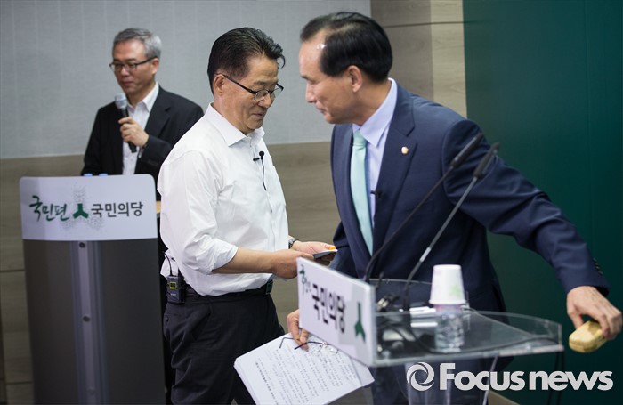 (서울=포커스뉴스) 박지원(가운데) 국민의당 비상대책위원장 겸 원내대표가 21일 오후 서울 마포구 당사에서 ‘유튜브’를 통해 사드(THAAD·고고도미사일방어체계)의 한반도 배치 철회를 요구하는 자체 '장외 필리버스터' 캠페인을 하고 있다.