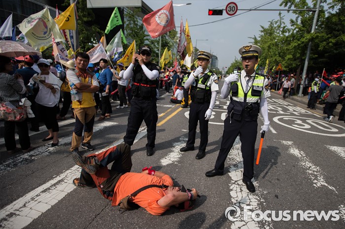 (서울=포커스뉴스) 21일 오후 서울 여의도 산업은행 본점 앞에서 농축산물의 김영란법 적용 제외를 요구하는 전국 농축산인 총궐기대회가 열리고 있다.