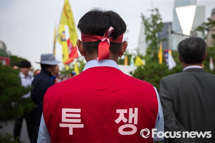 (서울=포커스뉴스) 21일 오후 서울 여의도 산업은행 본점 앞에서 농축산물의 김영란법 적용 제외를 요구하는 전국 농축산인 총궐기대회가 열리고 있다.