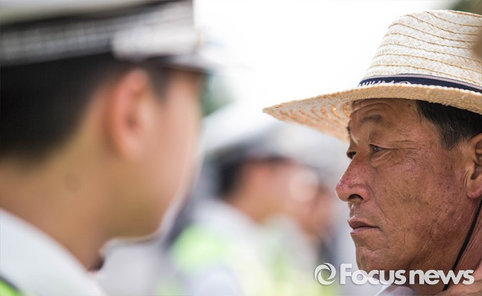 | △ '경찰과 마주한 늙은 농민의 근심' |