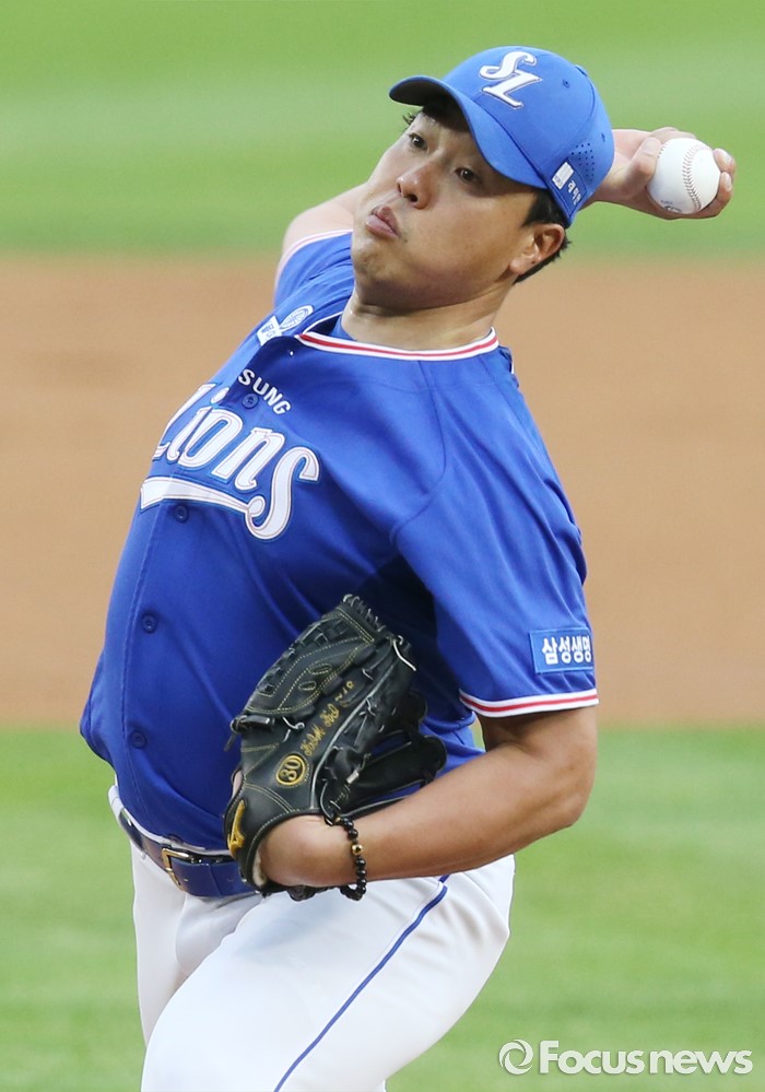 (서울=포커스뉴스) 21일 서울 잠실구장에서 열린 2016 프로야구 삼성-두산 경기에서 1회말 삼성 선발투수 김기태가 투구하고 있다.