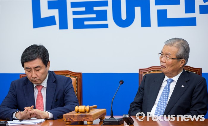 (서울=포커스뉴스) 김종인(오른쪽) 더불어민주당 비상대책위 대표와 이종걸 전 원내대표가 22일 오전 서울 여의도 국회에서 열린 비상대책위원회의에 참석하고 있다.
