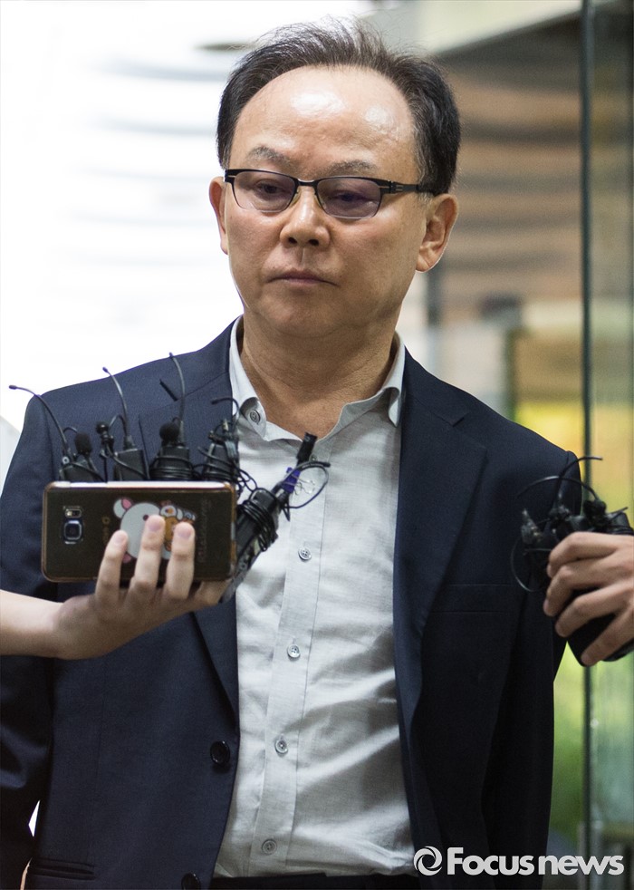 (서울=포커스뉴스) 롯데케미칼의 270억원대 조세포탈 혐의를 받고 있는 기준 전 롯데물산 사장이 영장실질심사를 받기 위해 10일 오전 서울중앙지법으로 들어서며 취재진 질문을 듣고 있다.