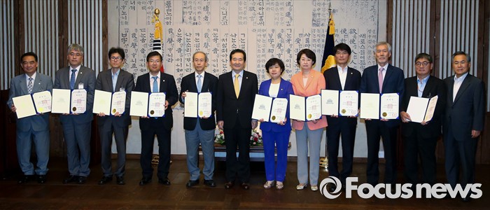 (서울=포커스뉴스) 22일 오전 서울 여의도 국회 의장접견실에서 열린 국회 공직자윤리위원회 위촉식에 참석한 정세균 국회의장이 윤성식 위원장 등 위원들과 기념촬영을 하고 있다. 왼쪽부터 최영식, 장성관, 김서기, 우양태 위원, 윤성식 위원장, 정 의장, 조배숙 부위원장, 김승희, 박완주, 유민봉, 전병준 위원, 우윤근 국회 사무총장.