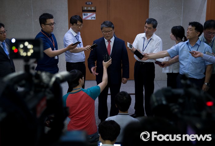 (서울=포커스뉴스) 조원진 새누리당 의원이 22일 오후 서울 여의도 국회 정론관에서8·9 전당대회 최고위원 출마 기자회견을 마친 뒤 취재진 질문에 답하기 위해 이동하고 있다.