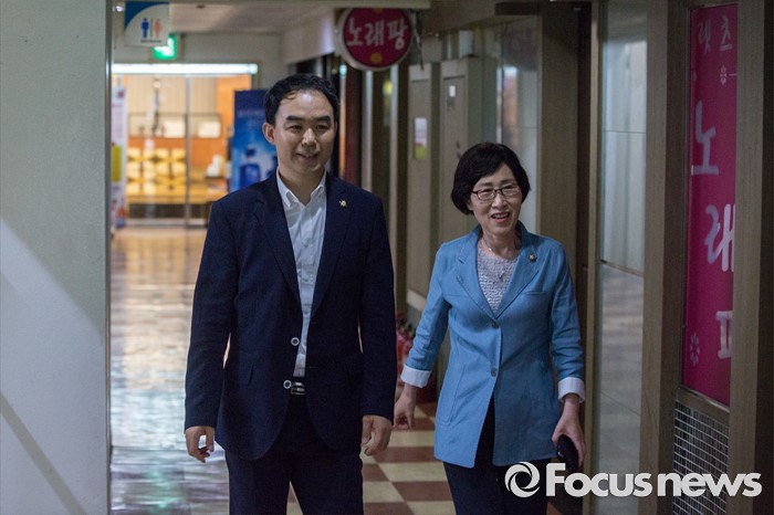 (서울=포커스뉴스) 채이배(왼쪽) 국민의당 의원과 김삼화 의원이 안철수 전 상임공동대표와 오찬을 하기 위해 22일 오후 서울 여의도 한 음식점으로 이동하고 있다.