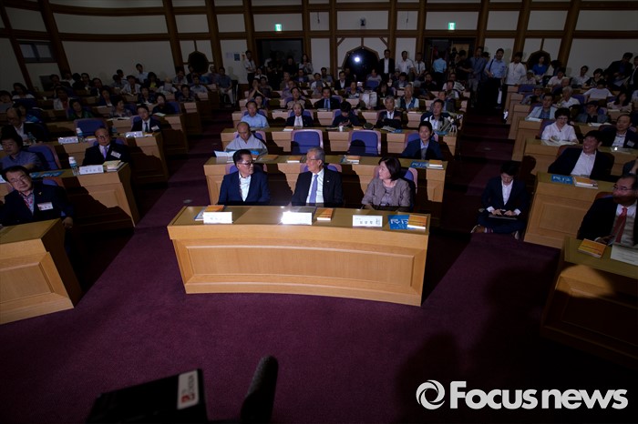 | △ 5.18 왜곡 방지 법안 개정 토론회 참석한 야3당 대표 |