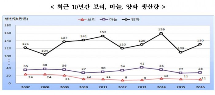 올해 마늘 생산량도 전년 대비 3.5% 증가한 27만5549톤이었다.