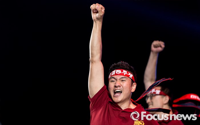 (서울=포커스뉴스) 22일 오후 서울 광화문광장에서 전국금속노동조합(금속노조)이 '재벌개혁'을 요구하며 2016 재벌개혁 시민한마당 행사를 진행하고 있다.