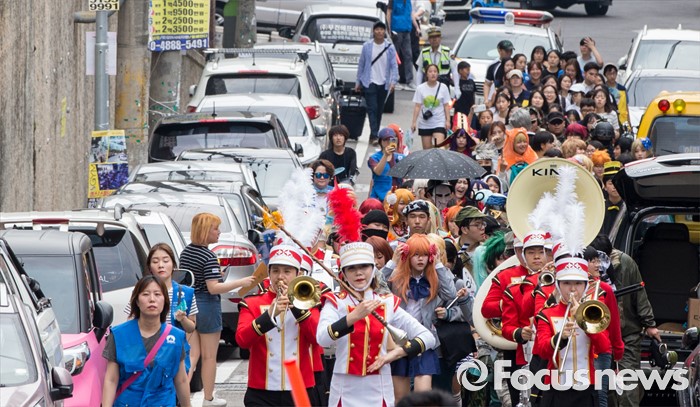 (서울=포커스뉴스) 23일 오전 서울 도봉구 쌍문역에서 코스프레를 한 학생들이 둘리뮤지엄 개관 1주년 기념행사 '둘리네 집들이' 퍼레이드를 하고 있다.