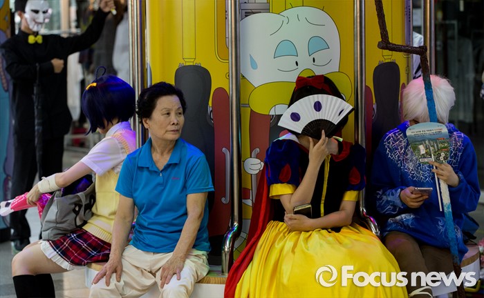 (서울=포커스뉴스) 23일 오전 서울 도봉구 쌍문역에서 코스프레를 한 학생들이 둘리뮤지엄 개관 1주년 기념행사 '둘리네 집들이' 퍼레이드를 기다리고 있다.