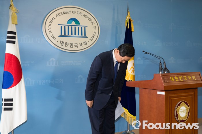 (서울=포커스뉴스) 김상곤 전 더불어민주당 혁신위원장이 24일 오전 서울 여의도 국회 정론관에서 당대표 출마 기자회견을 마친 뒤 인사하고 있다.