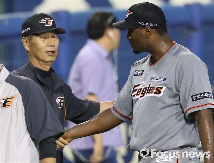| △ 카스티요를 맞이하는 김성근 감독 |