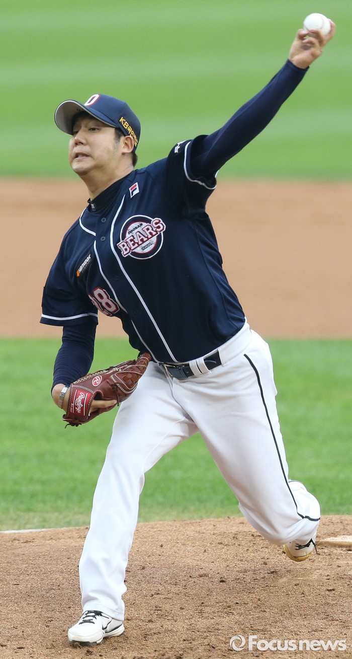 (서울=포커스뉴스) 24일 서울 잠실구장에서 열린 2016 프로야구 두산-LG 경기에서 1회말 두산 선발투수 장원준이 투구하고 있다.