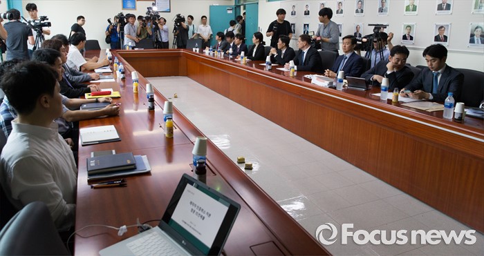 (인천=포커스뉴스) 요하네스 타머 아우디폭스바겐 사장을 비롯한 관계자들이 25일 오전 인천 서구 국립환경과학원에서 열린 차량 인증 조작 관련 환경부 청문회 시작을 기다리고 있다.