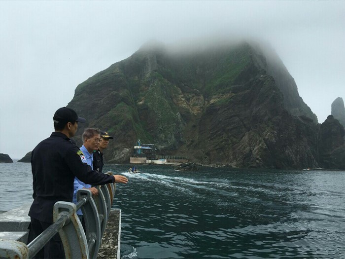 (서울=포커스뉴스) 문재인 더불어민주당 전 대표가 광복절을 앞두고 25일 독도를 방문, 보트에 올라 둘러보고 있다. <사진제공=문재인 전 대표측>