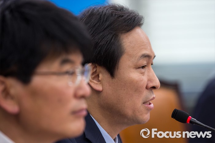 (서울=포커스뉴스) 우상호 더불어민주당 원내대표가 26일 오전 서울 여의도 국회에서 열린 원내대책회의에 참석해 모두발언 하고 있다.