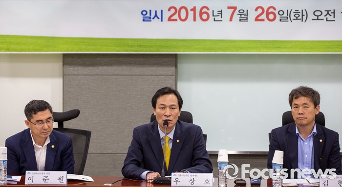 (서울=포커스뉴스) 우상호 더불어민주당 원내대표가 26일 오전 서울 여의도 국회의원회관에서 열린 '농업과 행복한 미래 창립식'에 참석해 인사말 하고 있다.