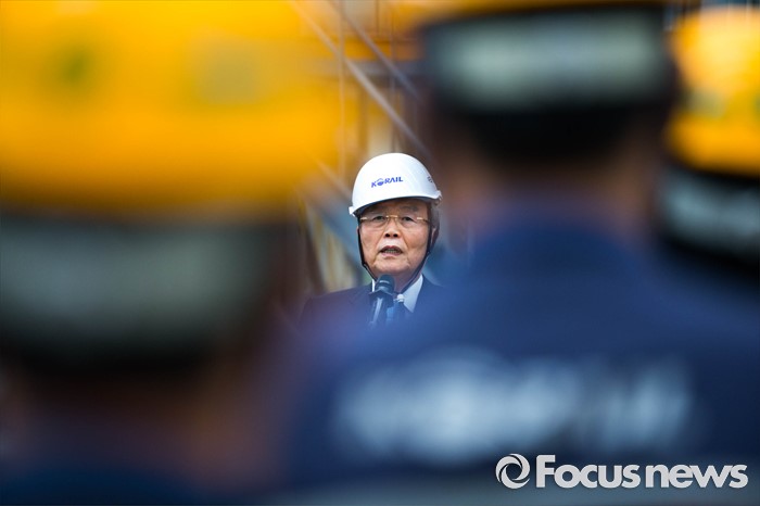 (고양=포커스뉴스) 김종인 더불어민주당 비대위 대표가 26일 오전 경기도 고양시에 위치한 수도권철도차량정비단을 방문, 근로자들에게 격려사를 하고 있다.