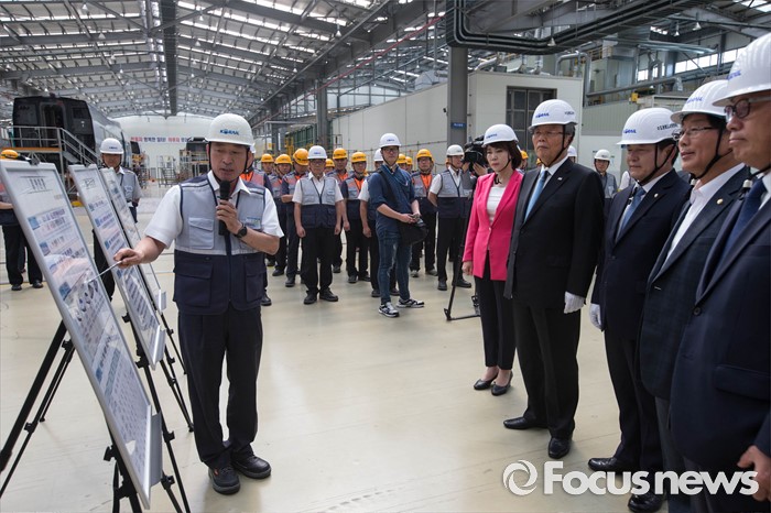 (고양=포커스뉴스) 김종인 더불어민주당 비대위 대표가 26일 오전 경기도 고양시에 위치한 수도권철도차량정비단을 방문, 관계자에게 현황 보고를 듣고 있다.