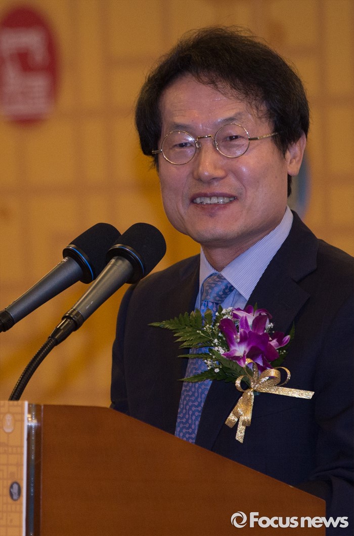 (서울=포커스뉴스) 26일 오전 서울 종로구 세종문화회관에서 열린 '2016 전국기능경기대회 서울특별시 선수단 결단식 및 홍보대사 위촉식'에 참석한 조희연 서울시 교육감이 축사를 하고 있다.