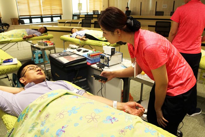 (서울=포커스뉴스) 녹십자(대표 허은철)는 지난 25일 경기도 용인 본사에서 임직원 180여명이 동참한 ‘사랑의 헌혈’행사를 실시했다고 26일 밝혔다.