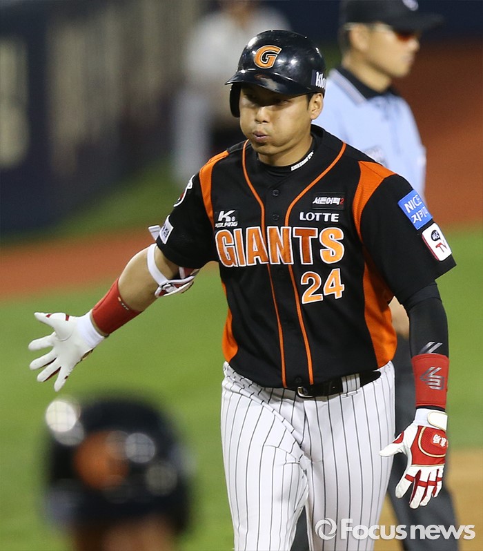 (서울=포커스뉴스) 26일 서울 잠실구장에서 열린 2016 프로야구 롯데-LG 경기 4회초 1사후 롯데 김문호가 우월 만루홈런을 치고 3루를 돌며 최만호 코치의 환영을 받고 있다.