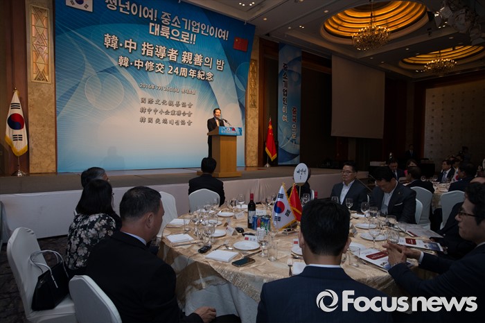 (서울=포커스뉴스) 정세균 국회의장이 26일 오후 서울 중구 롯데호텔에서 열린 '한중 지도자 친선의 밤' 행사에서 참석해 축사를 하고 있다.