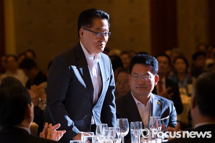 (서울=포커스뉴스) 박지원 국민의당 비상대책위원장이 26일 오후 서울 중구 롯데호텔에서 열린 '한중 지도자 친선의 밤' 행사에서 인사 후 자리에 착석하고 있다.