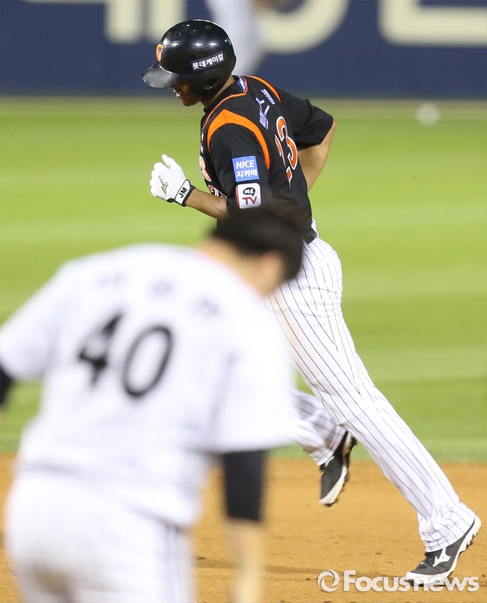 (서울=포커스뉴스) 26일 서울 잠실구장에서 열린 2016 프로야구 롯데-LG 경기 5회초 1사후 롯데 맥스웰이 좌월 솔로 홈런을 치고 베이스를 돌고 있다.