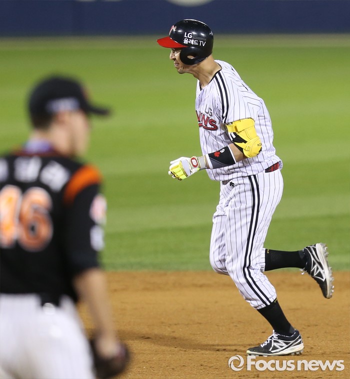 (서울=포커스뉴스) 26일 서울 잠실구장에서 열린 2016 프로야구 롯데-LG 경기 5회말 1사 2루에서 LG 정성훈이 우중간 홈런을 치고 그라운드를 달리고 있다.