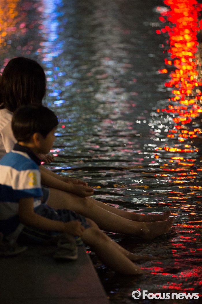 (서울=포커스뉴스) 서울과 전국 대분분 지역이 열대야인 26일 오후 서울 종로구 청계천을 찾은 시민들이 더위를 식히고 있다.