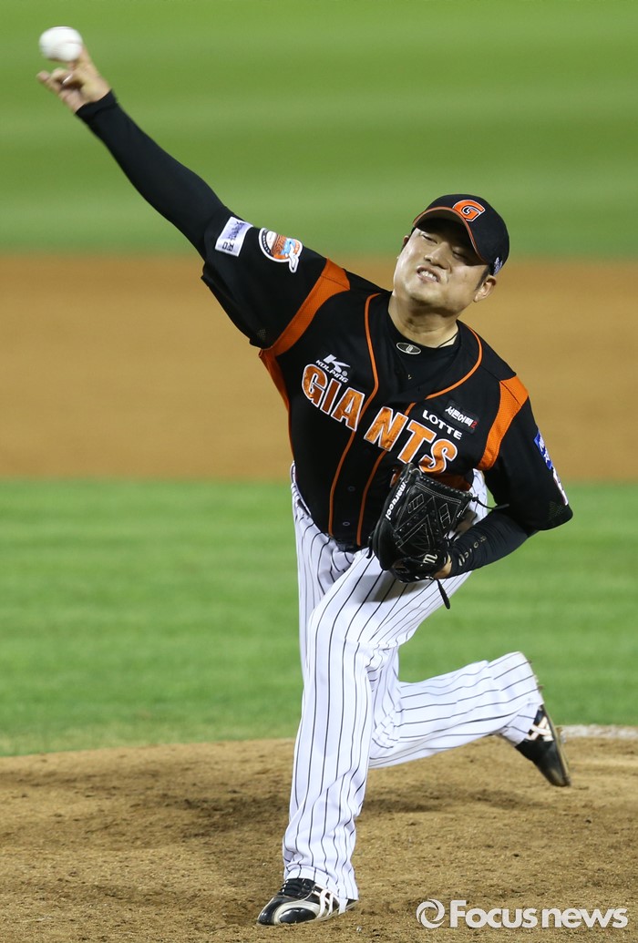 (서울=포커스뉴스) 26일 서울 잠실구장에서 열린 2016 프로야구 롯데-LG 경기 8회말 2사 2루에서 롯데 마무리 투수 손승락이 등판해 투구하고 있다.