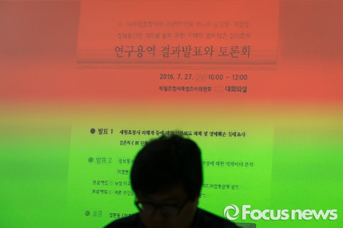 (서울=포커스뉴스) 27일 오전 서울 중구 4·16세월호 참사 특별조사위원회에서 세월호 참사 피해자에 대한 언론보도 피해 및 명예훼손 실태 조사 결과 발표와 토론회를 하고 있다.