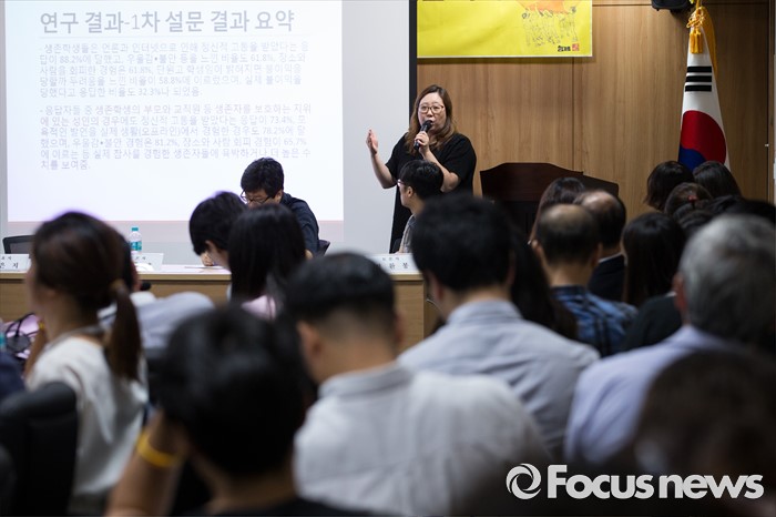 (서울=포커스뉴스) 27일 오전 서울 중구 4·16세월호 참사 특별조사위원회에서 세월호 참사 피해자에 대한 언론보도 피해 및 명예훼손 실태 조사 결과 발표와 토론회를 하고 있다.
