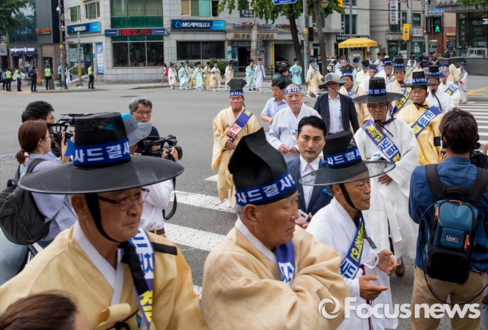 | △ 기자회견장 향하는 유림단체 |