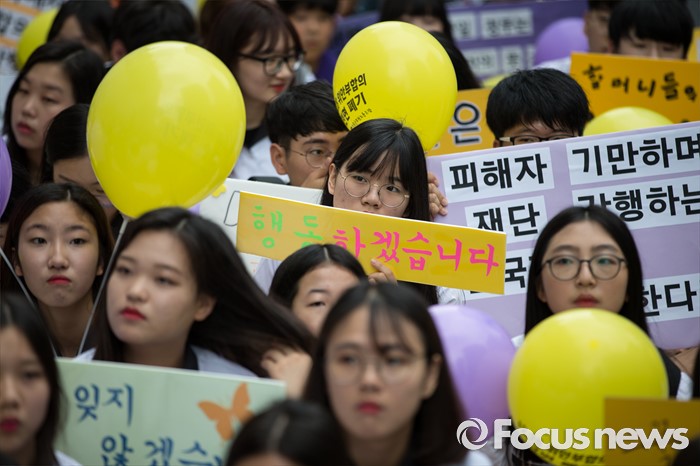 (서울=포커스뉴스) 27일 오후 서울 종로구 옛 일본대사관 앞에서 제1241차 일본군 위안부 문제해결을 위한 정기 수요집회가 열리고 있다.