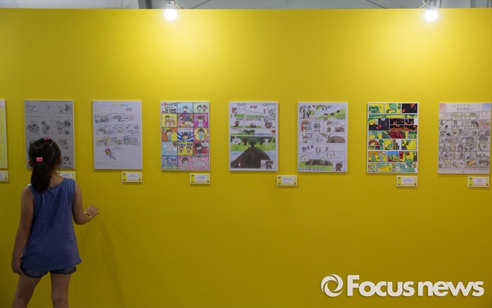 (부천=포커스뉴스) 27일 오후 경기도 부천시 한국만화박물관에서 열린 '제19회 부천국제만화축제'에 참여한 한 어린이가 전시작품을 관람하고 있다.