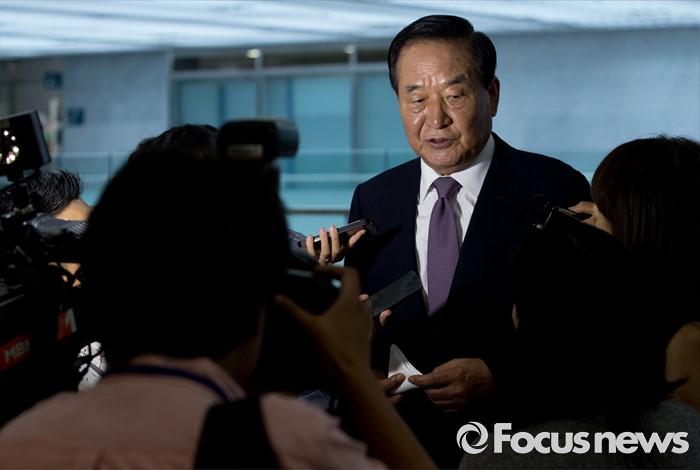 (서울=포커스뉴스) 27일 오후 서울 여의도 국회 의원회관에서 열린 한일의원연맹 간사회 및 총회에 참석한 서청원 새누리당 의원이 취재진 질문에 답하고 있다.