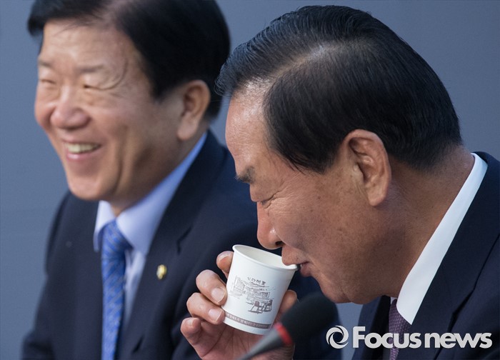 (서울=포커스뉴스) 27일 오후 서울 여의도 국회 의원회관에서 열린 한일의원연맹 간사회 및 총회에 참석한 서청원 새누리당 의원이 물을 마시고 있다.