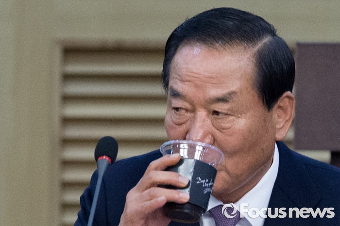 (서울=포커스뉴스) 27일 오후 서울 여의도 국회 의원회관에서 열린 한일의원연맹 간사회 및 총회에 참석한 서청원 새누리당 의원이 물을 마시고 있다.