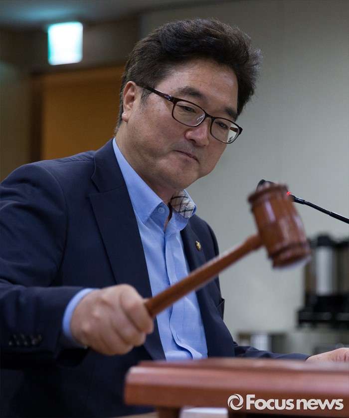 (분당=포커스뉴스) 27일 오후 경기도 성남 분당구 SK케미칼 본사에서 열린 가습기살균제 사고 진상규명과 피해구제 및 재발방지 대책마련을 위한 국정조사특별위원회 현장조사에서 우원식 위원장이 의사봉을 두드리고 있다.