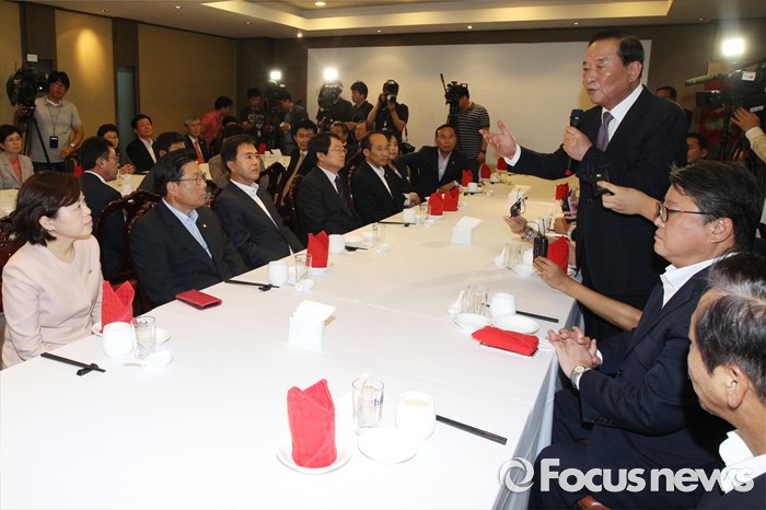 (서울=포커스뉴스) 서청원 새누리당 의원이 27일 오후 서울 영등포구 여의도 한 중식당에서 당 소속 의원 50여명을 초청해 친박(친박근혜)계 만찬 회동을 하고 있다.