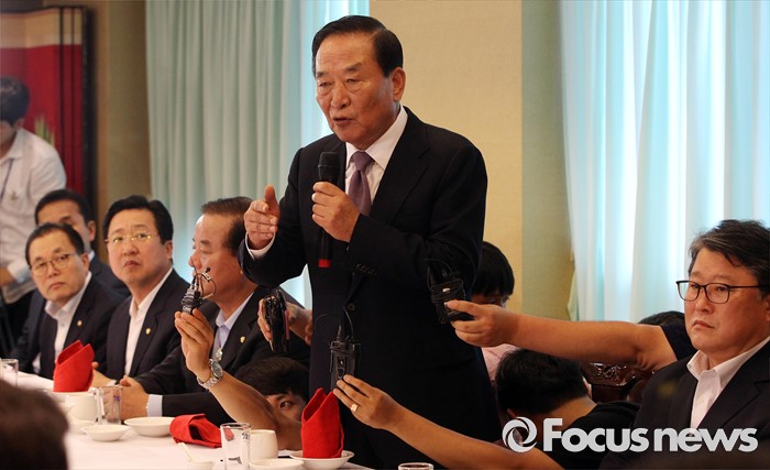 (서울=포커스뉴스) 서청원 새누리당 의원이 27일 오후 서울 영등포구 여의도 한 중식당에서 당 소속 의원 50여명을 초청해 친박(친박근혜)계 만찬 회동을 하고 있다.