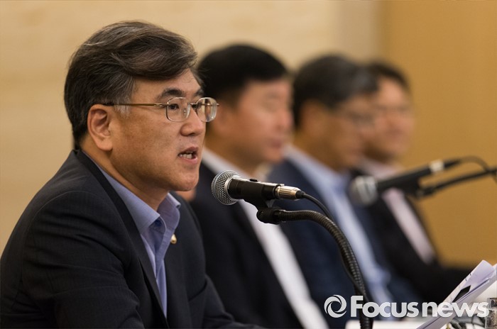 (서울=포커스뉴스) 28일 오전 서울 서초구 쉐라톤 서울 팔래스 강남 호텔에서 열린 '책임있는 소비문화 조성을 위한 기업인과의 간담회'에 참석한 김학현(왼쪽) 공정거래위원회 부위원장이 모두발언 하고 있다.